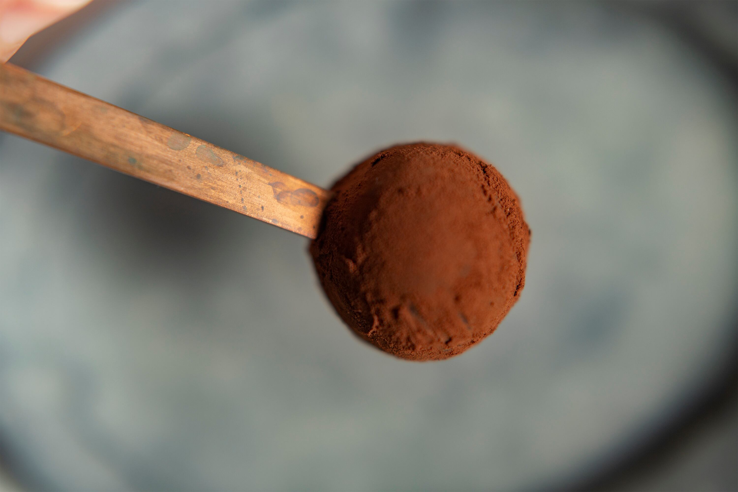 「発酵」にとことんこだわり、酒粕とカカオマス2種類の発酵食品が、トリュフの大部分の重量を占めています。コレステロールセロの上、食物繊維と葉酸たっぷりの、大変珍しいトリュフです。